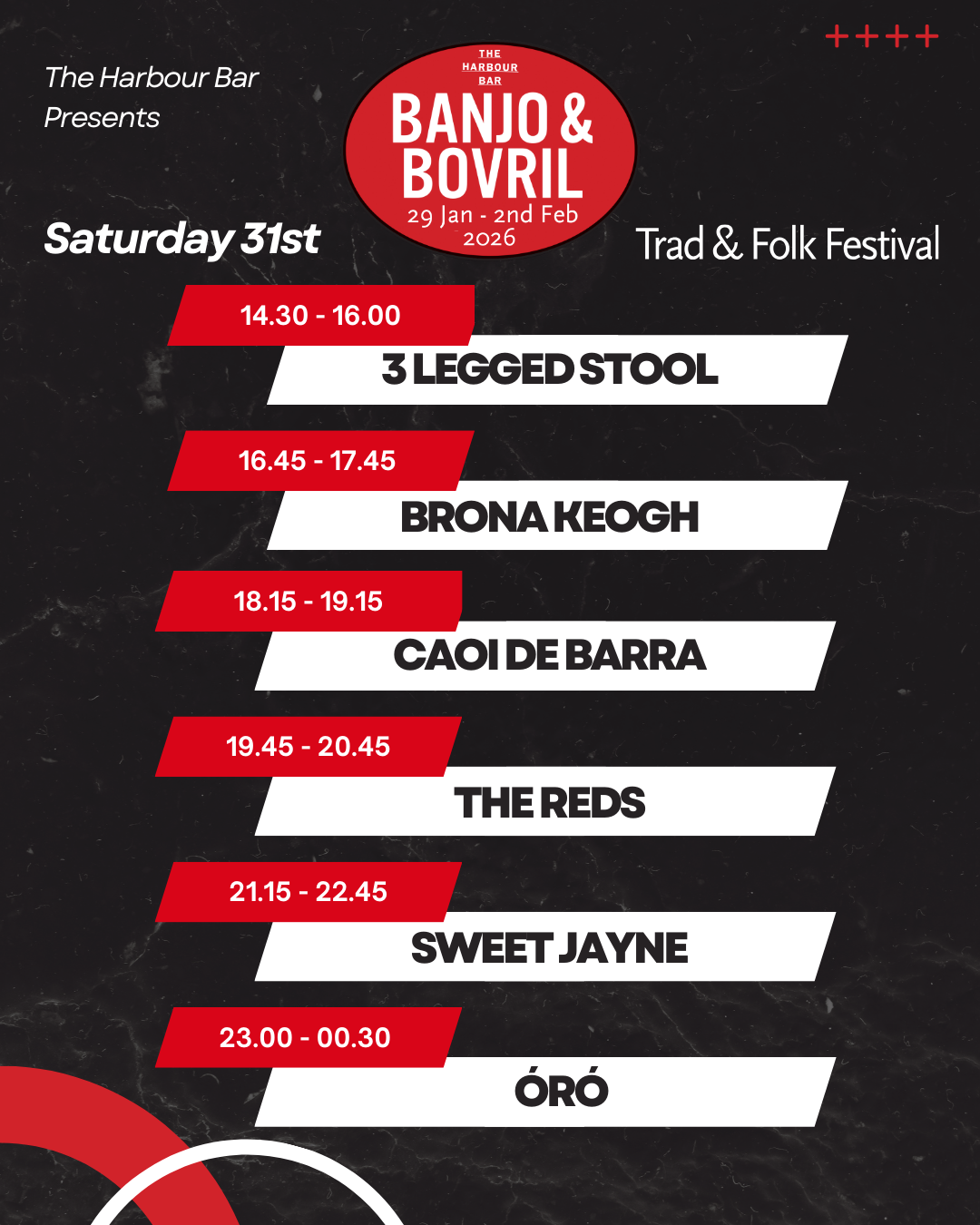 Bar lineup : Brand New Switcheroo, Cooked Jack, Seoidin, The Larry's